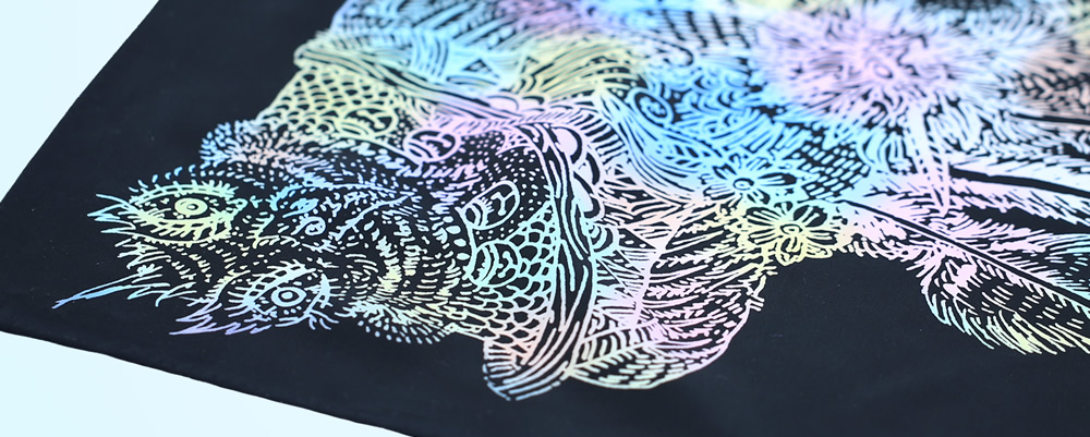 アートエディションは、アートマスターピースに使用した7色の魂のMADARA模様を一枚づつのカラーで表現した7色7枚とモノトーンの3色を加えた10枚で展開します。