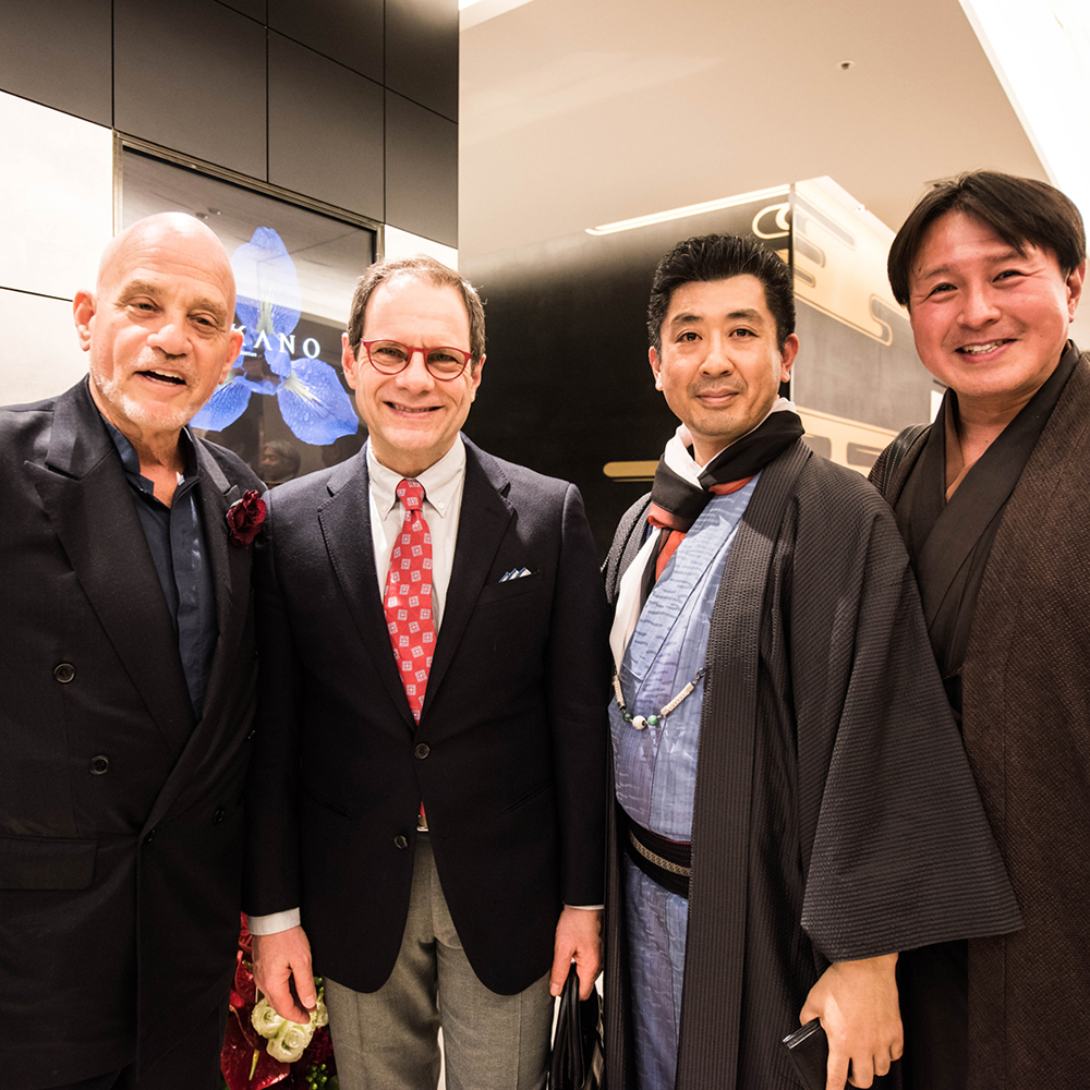 遥々、ニューヨークから駆けつけてくださった、元ユニオン・スクエアカフェのオーナーシェフ マイケル・ロマーノさん、名コピーライターでもありプロデューサーのジョージ・ブラウンさん、NYギャラリーのスティーブン・グローバス会長、そして、ベルギーからは、第二次世界大戦中に6,000名の避難民の命を救った「命のパスポート」で知られ、日本が世界に誇る人物「杉原千畝さん」のご子息、杉原伸生氏にもお越しいただき、突然のお願いにもかかわらず、快く乾杯のご発声をいただきました。