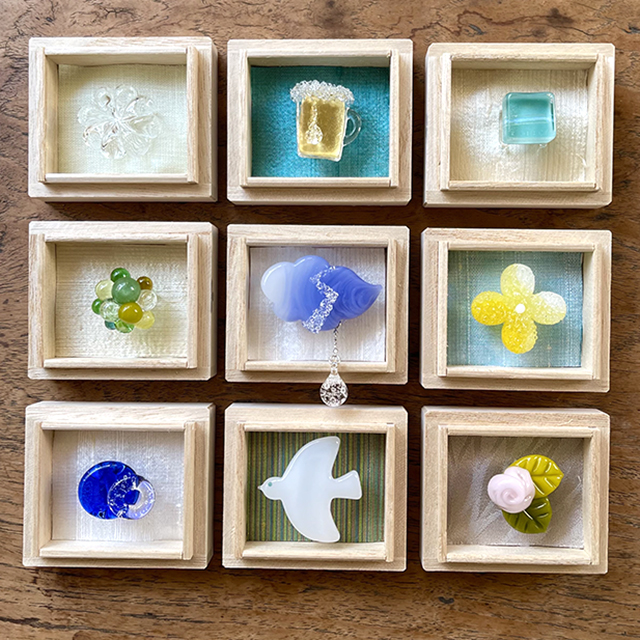 帯留や帯飾り、かんざしなど。美しさとキュート、懐かしさと輝きを詰め込んだガラスの作品たち。