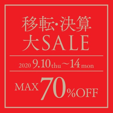 2020.9.10(thu)~14(mon) ※最終日は17:00までSALE博多リバレイン店決算