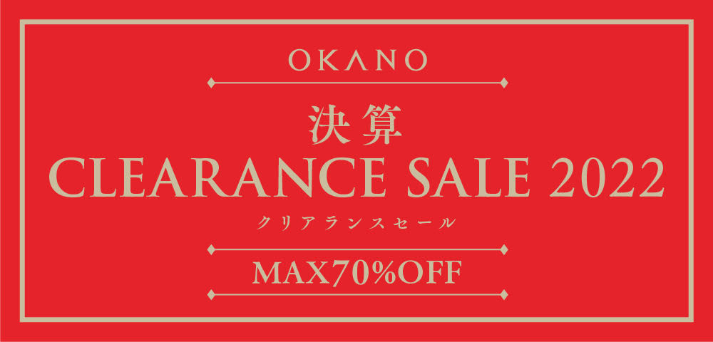皆様のご愛顧のおかげで、OKANOは今年も9月に本決算を迎えます。日頃の感謝の気持ちを込めて、9月1日(木)~30日(金)の期間限定でオンラインショップでも決算クリアランスセールを開催!ぜひこの機会にオンラインショップをご利用ください。