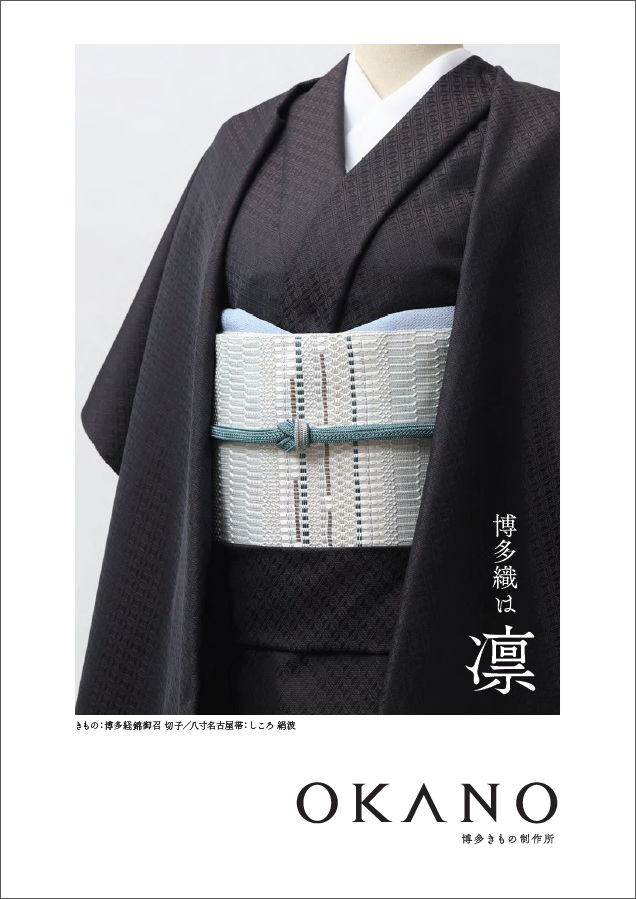 OKANO 博多きもの制作所は、創業1897年の博多織元です。伝統的工芸品「博多織」をはじめ、全国の産地や作家のきものを販売・制作しています。直営店では、帯締や帯揚、帯留などの和装小物も豊富に取り揃え、「博多織は、凛」をテーマとしたモダンなきものスタイリングをご提案。あなたの素敵な『KIMONO LIFE』を支え、きものを通じて日本の職人技を未来と世界へ伝えます。