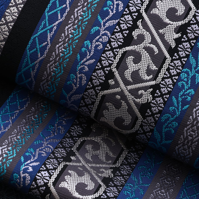 博多織 織元OKANOならではの技術を活かし、注文をいただいてから一つひとつ丁寧に織り上げる「八寸名古屋帯OKANO オーダー献上」。博多織を代表する献上柄の中でも、希少となっている<一本独鈷>が存在感豊かな作品です。