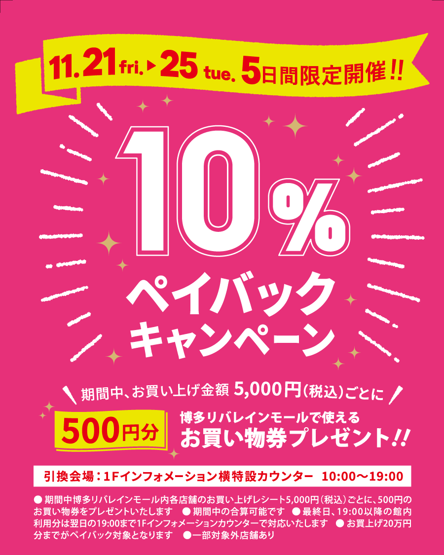 【博多リバレイン店】10%ペイバックキャンペーンのお知らせ2025.11.14