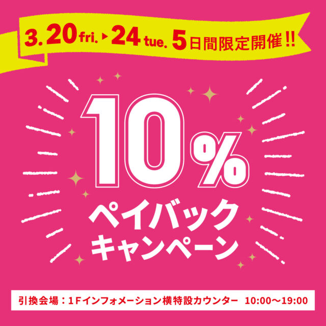 【博多リバレイン店】10%ペイバックキャンペーンのお知らせ2026.03.16