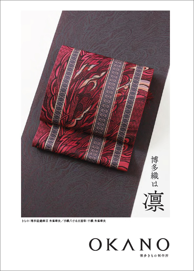 OKANO 博多きもの制作所は、創業1897年の博多織元です。伝統的工芸品「博多織」をはじめ、全国の産地や作家のきものを販売・制作しています。直営店では、帯締や帯揚、帯留などの和装小物も豊富に取り揃え、「博多織は、凛」をテーマとしたモダンなきものスタイリングをご提案。あなたの素敵な『KIMONO LIFE』を支え、きものを通じて日本の職人技を未来と世界へ伝えます。