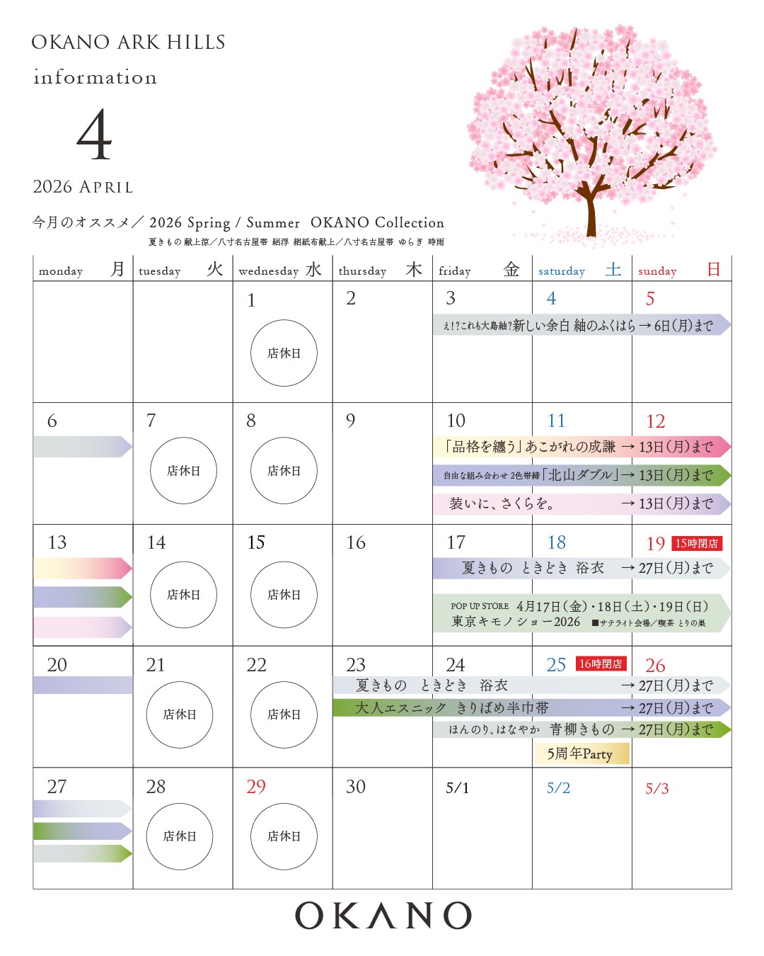 【アークヒルズ店】4月臨時休業のお知らせ2026.03.20