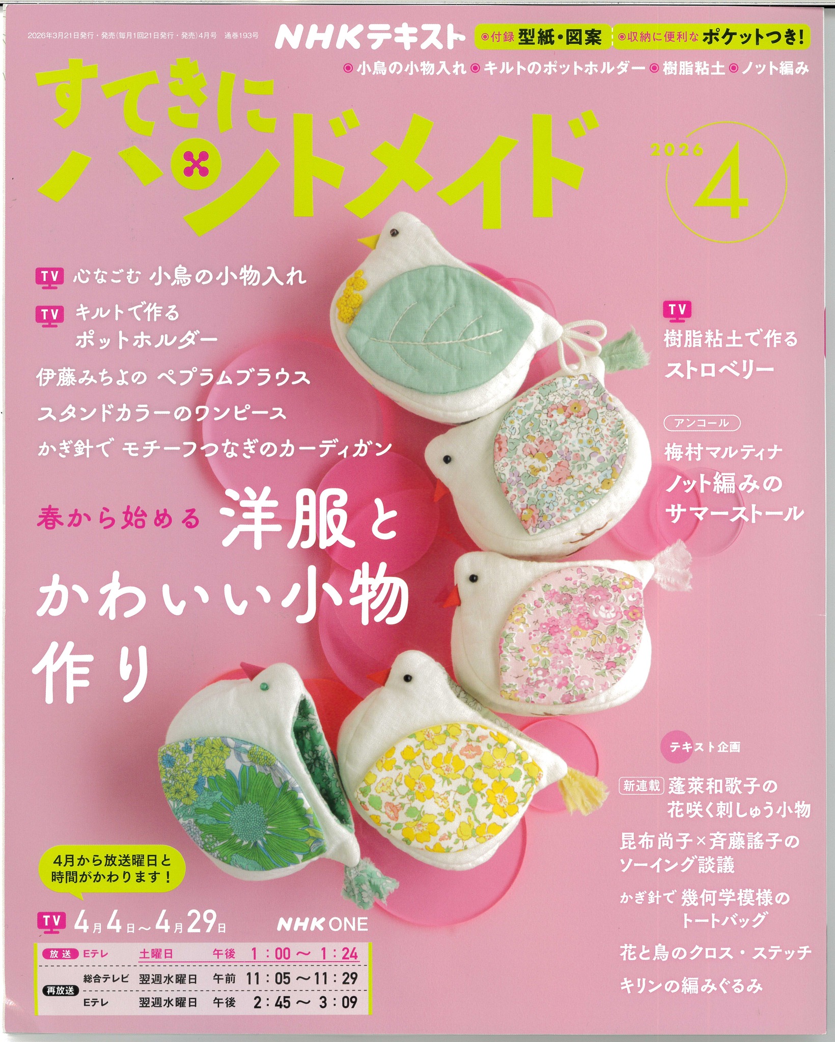 NHK出版「すてきにハンドメイド 2026年4月号」に掲載されました!2026.03.24