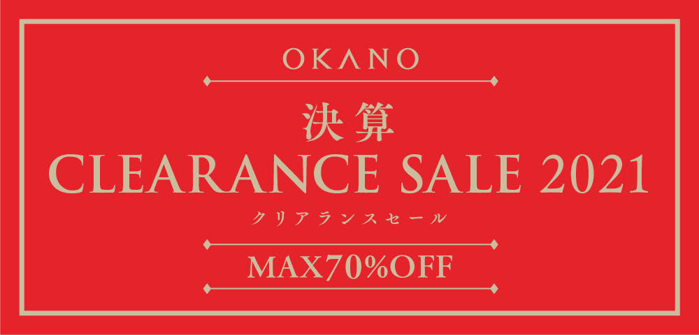 皆様のご愛顧のおかげで、OKANOは124年目の本決算を迎えます。そこで、日頃の感謝の気持ちを込めて、各店舗とオンラインショップにて「決算CLEARANCE SALE 2021」を開催いたします。OKANO本社工房の商品や各取引メーカー・問屋様からの特別価格品など、1年の締めくくりとなる決算セールです。ぜひこの機会に各店舗へのご来店、オンラインショップをご利用ください。皆様のご来店をお待ちしております。