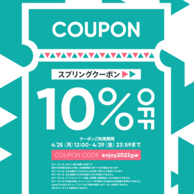 【ONLINE SHOP】BASE 全品10%OFF クーポンをプレゼント!2022.04.25