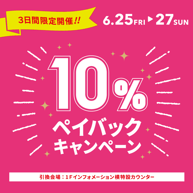 【博多リバレイン店】10%ペイバックキャンペーンのお知らせ2021.06.21